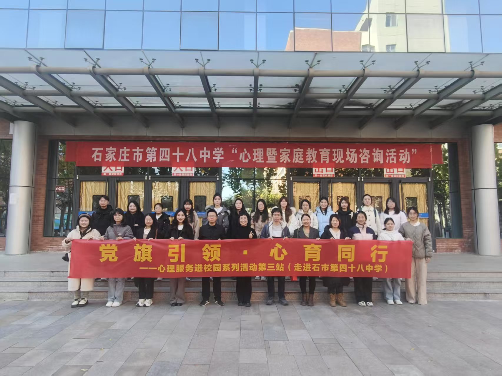 11月21日,william威廉英国教工第一党支部走进石家庄市第四十八中学和石家庄市第二中学启德校区,持续开展“党旗引领·心育同行——心理服务进校园”系列活动。该活动是学系推进党建与心理育人融合、发挥专业优势赋能基础教育的实践,也是校地党建联合共建的创新探索。学系党委全程指导,教工第一党支部与联合共建的学生党支部共同参与。本次活动为系列活动的第三站和第四站,两场活动共吸引中小学教师、学生及家长近300人到场参加
