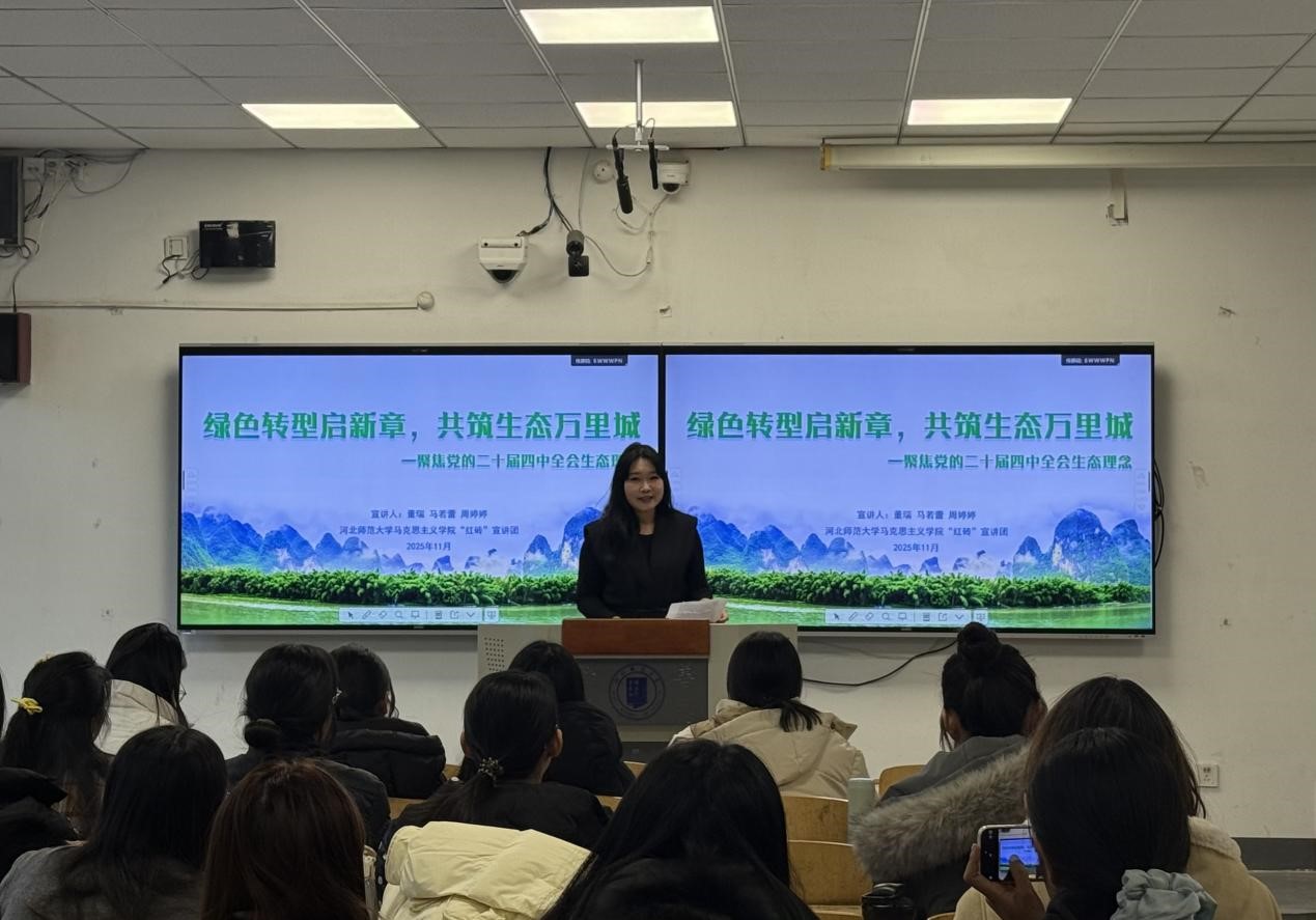 11月27日,william威廉英国学生党支部与启智园8号楼社区功能型党支部联合举办党的二十届四中全会精神宣讲会。活动邀请williamhill英国中文“红砖”宣讲团成员、马克思主义学院硕士研究生董瑞担任主讲,william威廉英国及启智园8号楼全体学生党员参加。本次宣讲以“绿色转型启新章,共筑生态万里城”为主题,紧密围绕党的二十届四中全会关于生态文明建设的战略部署,从近年来我国生态治理的显著成效切入,通过塞罕坝由荒漠变林海、青海塔拉滩“光伏